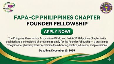 The Philippine Pharmacists Association (PPhA) and FAPA-CP Philippines Chapter invite qualified and distinguished pharmacists to apply for the Founder Fellowship —